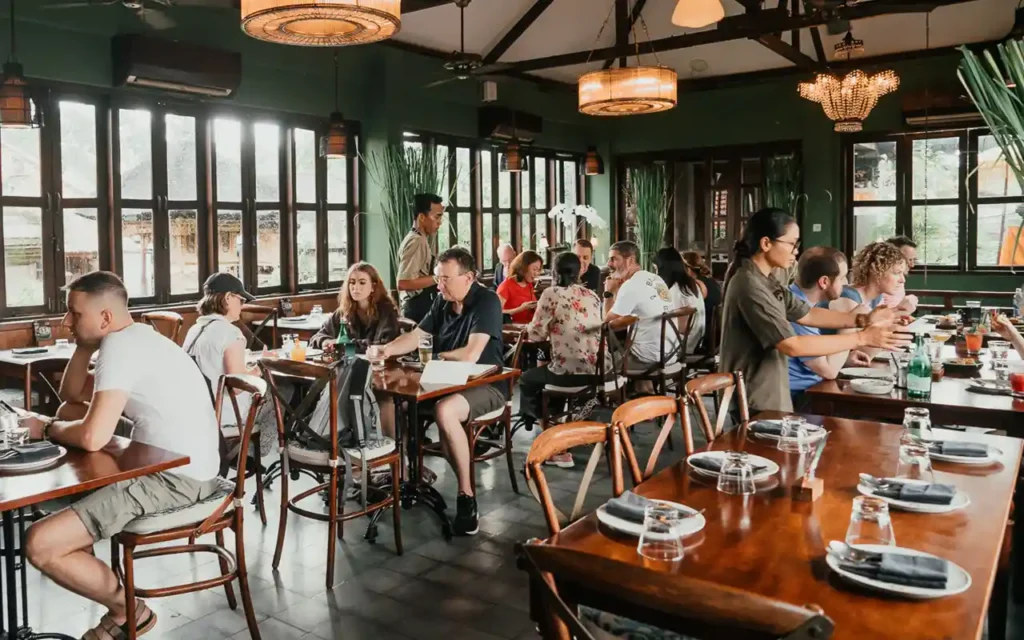 Apéritif restaurant is a fine dining restaurant in Ubud boasts breathtaking views of a jungle valley and features an elegant interior design reminiscent of the colonial era.